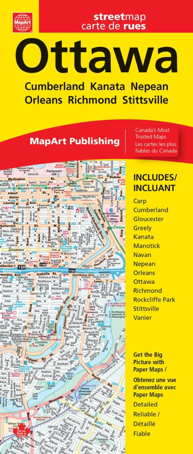 Les cartes pliées constituent la norme de confiance depuis des années, offrant une précision et une fiabilité imbattables à un prix avantageux. Des index détaillés permettent une localisation rapide et facile des destinations. C'est un incontournable pour tous ceux qui voyagent à Ottawa.