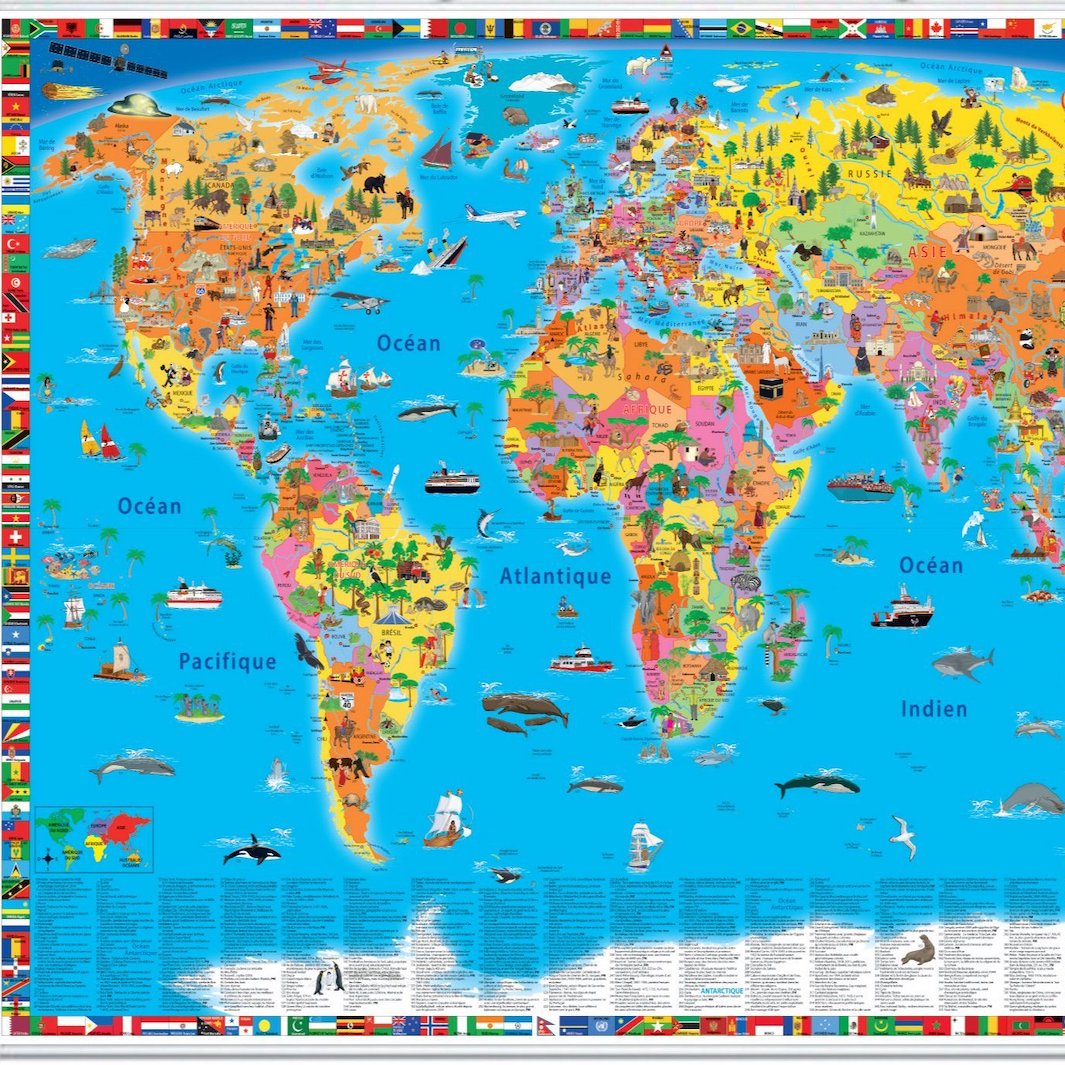 Des cartes de pays, de continents ou du monde où l'on peut voir et sentir.