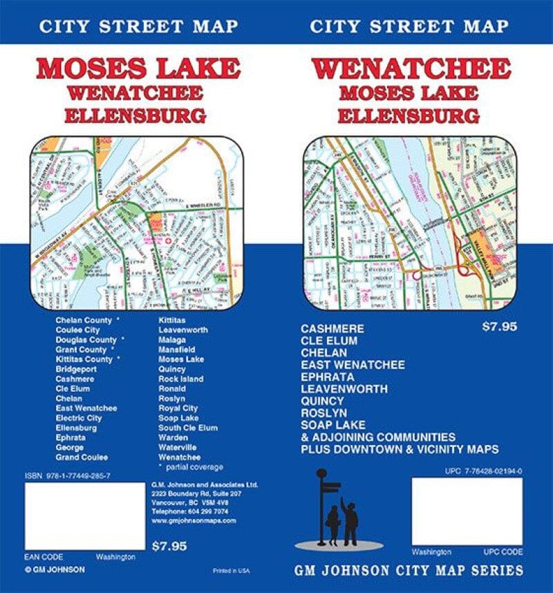 Carte des rues - Wenatchee, Moses Lake, Ellensburg, Moses Lake, Wenatchee, Ellensburg | GM Johnson