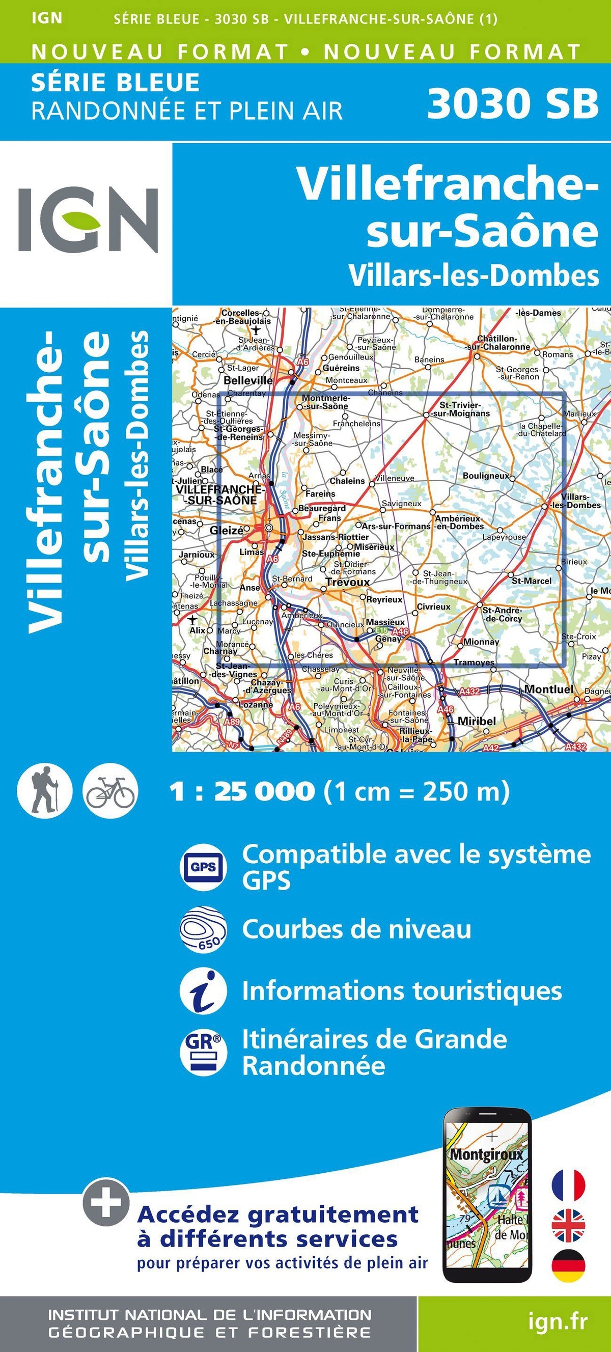 Carte de randonnée n° 3030 - Villefranche-sur-Saône, Villars-les-Dombes | IGN - Série Bleue