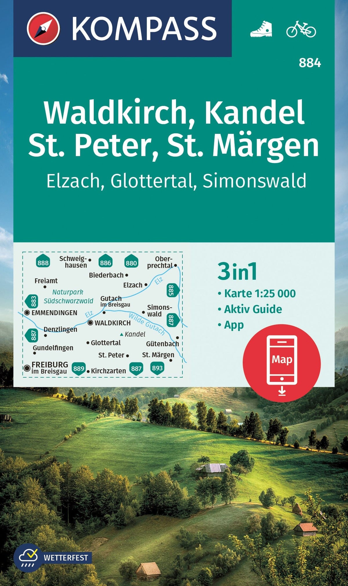 Carte de randonnée n° 884 de Waldkirch, Kandel, St.Peter, St.Märgen (Bade-Wurtemberg) éditée par Kompass.