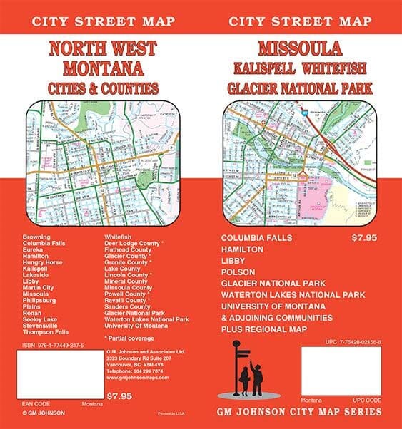 Missoula - Kalispell - Whitefish et le parc national des Glaciers (Montana) | GM Johnson plan de ville GM Johnson
