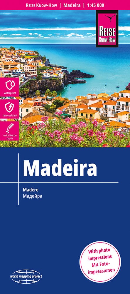 Echelle 1/45 000 (1 cm = 450 m). Carte routière de Madère éditée par Reise Know How. Cette carte couvre tout l'archipel de Madère (Madère, Iles désertas, Porto Santo). En encart, un index des villes.