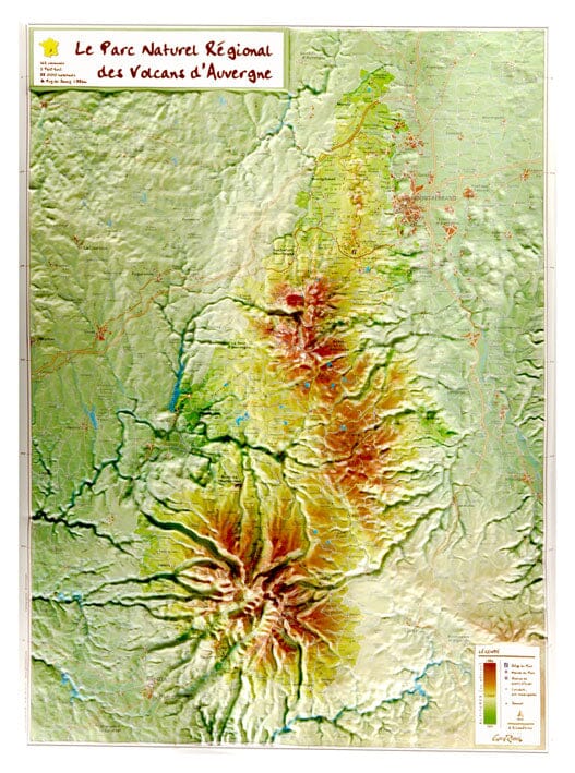 Carte en relief - Parc naturel régional des Volcans d'Auvergne - 31 x 42 cm | Relief Editions