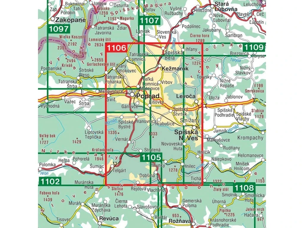 Carte pédestre n° 1106 - Slovenský Raj / Parc national du Paradis slovaque (Slovaquie) | Shocart