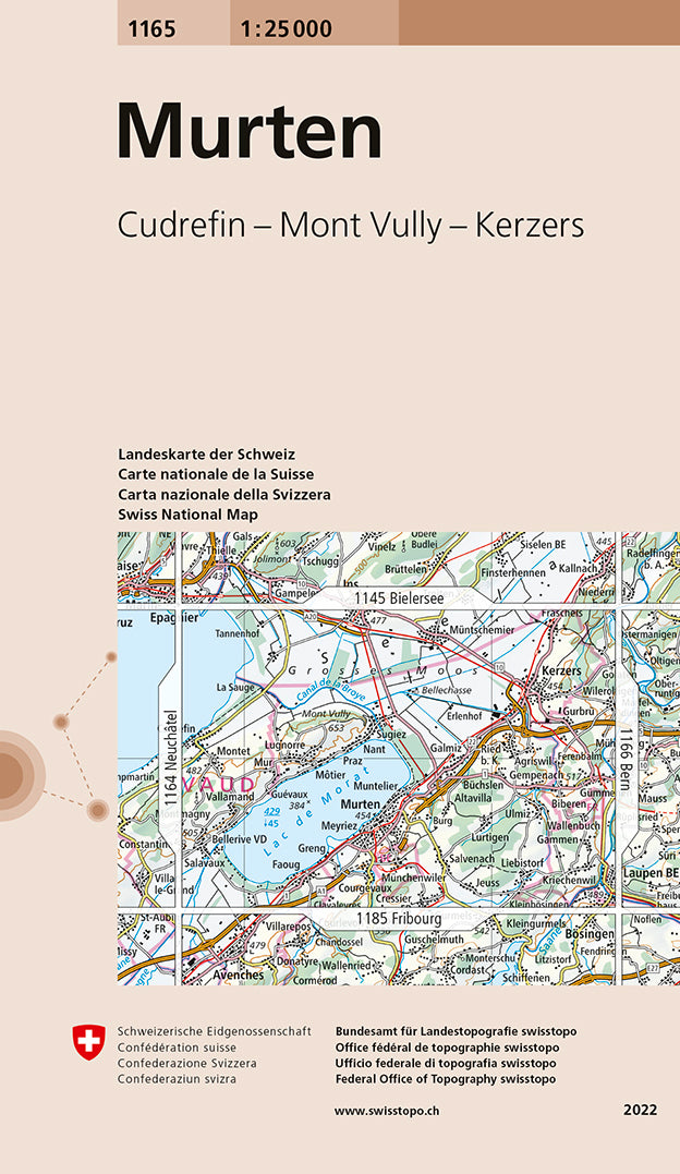 Carte topographique n° 1165 - Murten (Suisse) | Swisstopo - 1/25 000