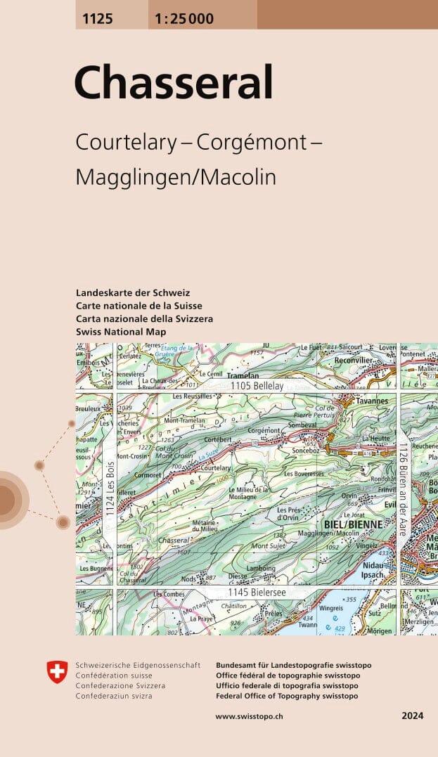 Carte topographique de la région de Chasseral destinée aux randonneurs, alpinistes, urbanistes, individualistes et amateurs de découvertes.