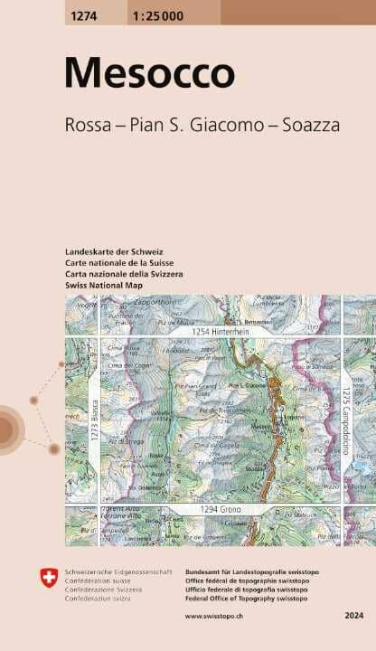 Carte topographique n° 1274 - Mesocco (Suisse) | Swisstopo - 1/25 000