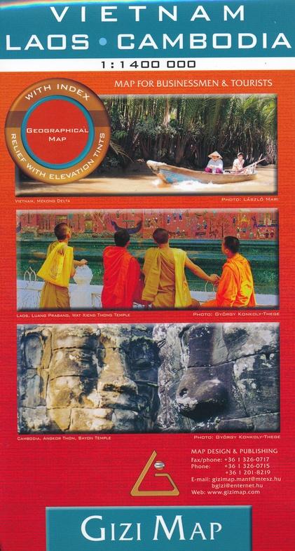 Geographical map of Vietnam, Laos and Cambodia published by Gizi Map. Scale 1/1 400 000 (1 cm = 14 km). P>