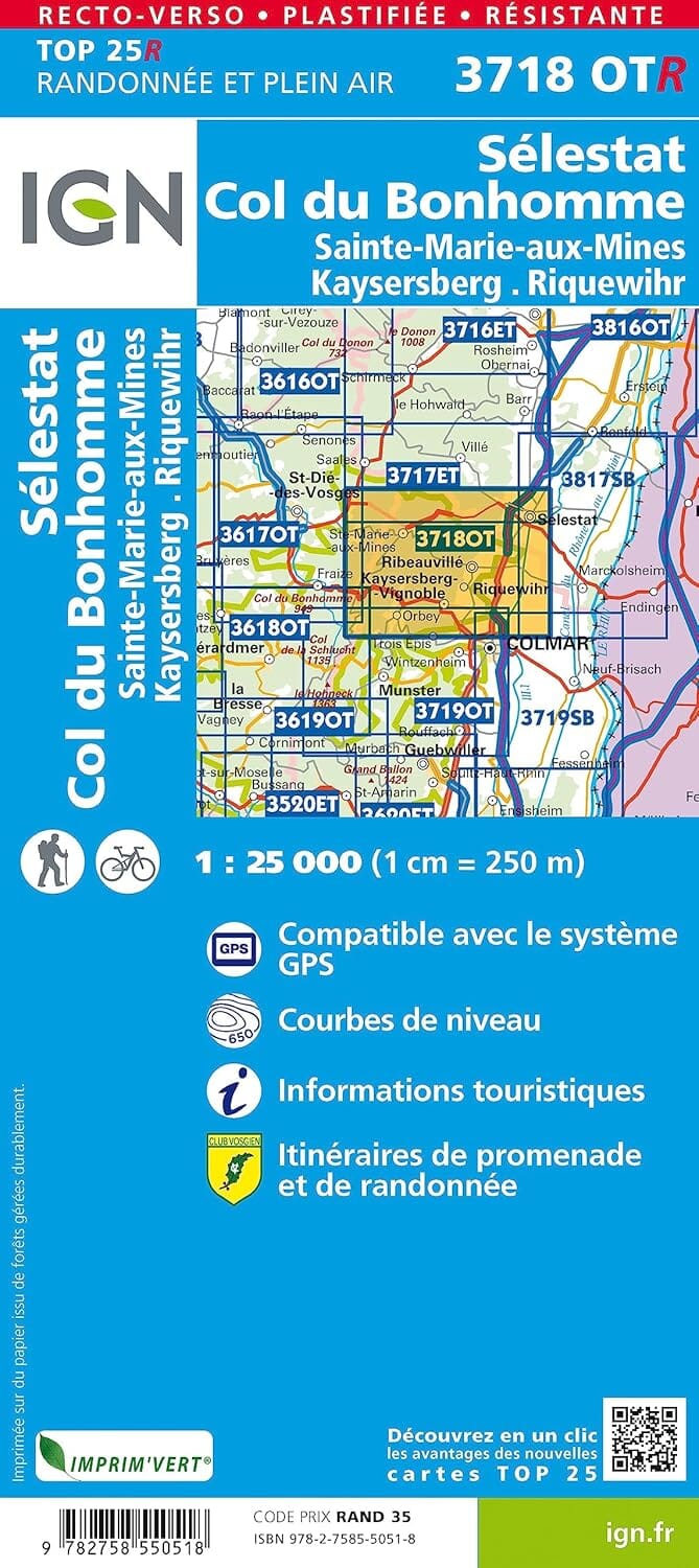 TOP 25 Map No. 3718 OTR (Resistant) - Sélestat, Col du Bonhomme, Sainte-Marie-aux-Mines, Kaysersberg, Riquewihr | IGN