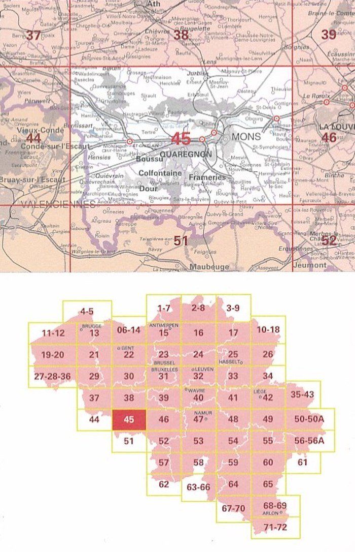 Topographic map No. 45 - Mons (Belgium) | IGN Belgium - 1/50 000