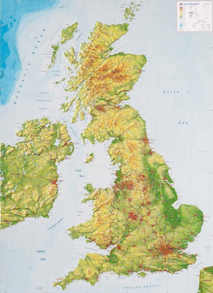 Relief Wall map - United Kingdom - 77 x 57 cm | Georelief