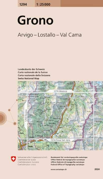 Topographic map No. 1294 - Grono (Switzerland) | Swisstopo - 1/25 000