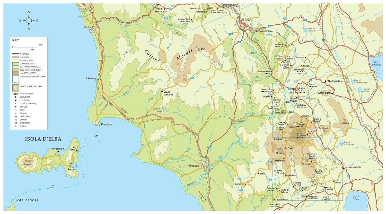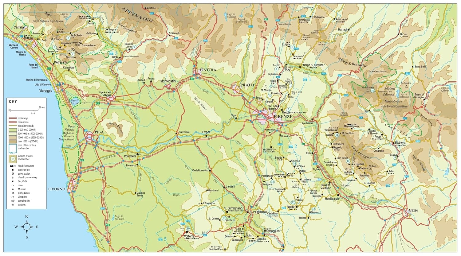 The Sunflower Tuscany guide is indispensable for hiking in Tuscany or seeing the region by car. We cover routes from the Carrera marble quarries in the northwest down to southern Tuscany, with a particular emphasis on the area round Florence and in the Chianti, showing trekking routes of varying difficulty, all of which are mapped in detail.
