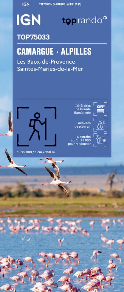 The TOP 75 map no. 33 – Camargue & Alpilles , published by the IGN , covers the areas of Les Baux-de-Provence and Saintes-Maries-de-la-Mer . It is a particularly versatile resource for hiking , outdoor activities and tourist travel in this iconic region of southern France.