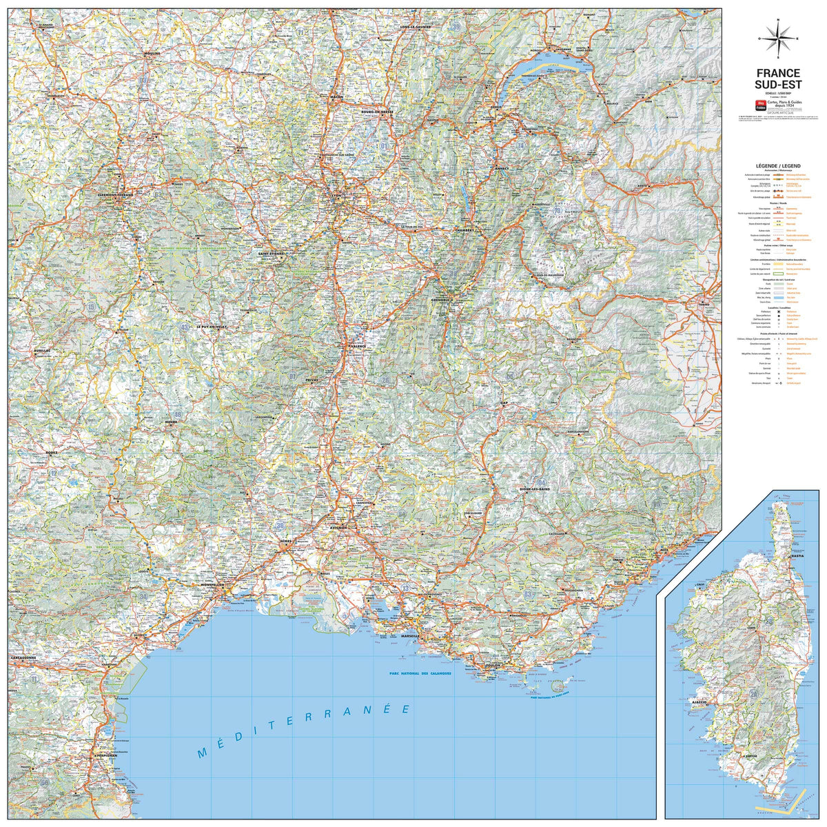 This road map of the southeastern quarter of France is designed to be displayed on a wall: ideal for decorating an office, living room, or bedroom. It will appeal to anyone who appreciates Coffee table posters that are both aesthetically pleasing and rich in content.