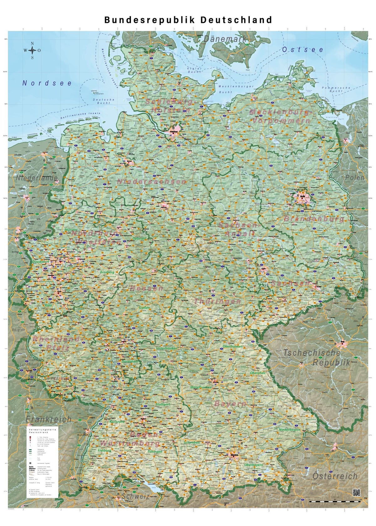 Physical wall map of Germany in German .