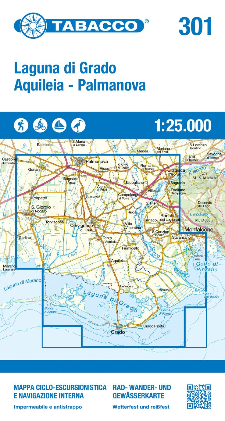Hiking map No. 301 - Laguna di Grado, Aquileia, Palmanova (Friuli-Venezia Giulia, Italy) | Tabacco