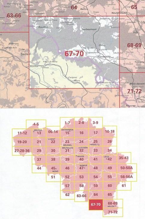 Topographic map No. 67 - 70 - Bouillon (Belgium) | IGN Belgian - 1/50 000