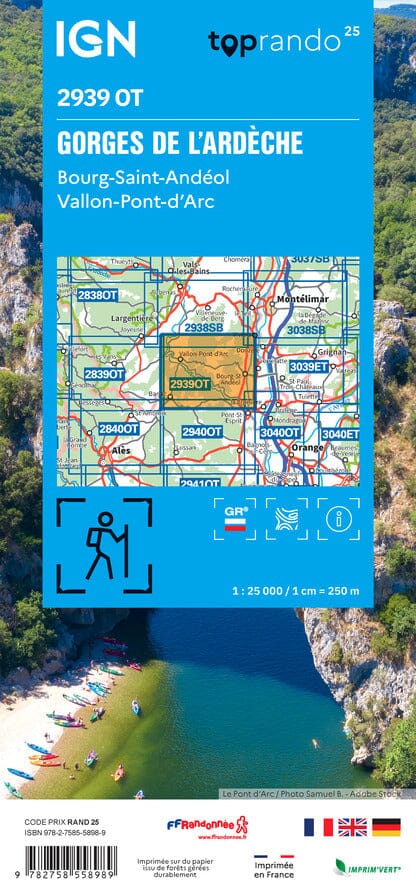 Map TOP 25 No. 2939 OT - Ardèche Gorges, Bourg-St-Andéol | IGN