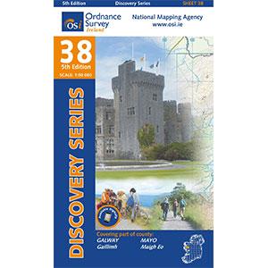 Very detailed topographic map of the Galway, Mayo region with a number of added tourist symbols, such as tourist sites, campsites and youth hostels. The map includes level curves, a great use of color and hiking routes. National parks and "national reserves" are highlighted on this map.