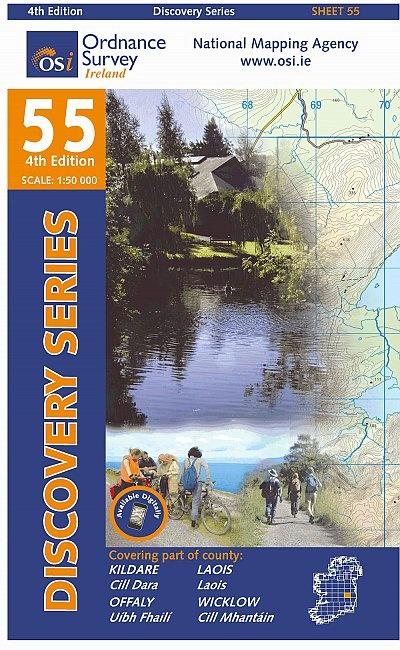 Very detailed topographic map of Kildare, Laois, Wicklow with a number of added tourist symbols, such as tourist sites, campsites and youth hostels. The map includes level curves, a great use of color and hiking routes. National parks and "national reserves" are highlighted on this map.