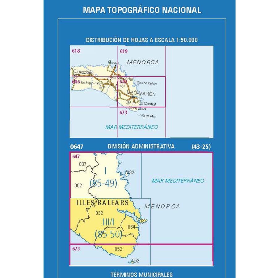 Topographic map of Spain No. 0647.3 / 673.1 - Maó - Mahón (Menorca) | CNIG - 1/25 000