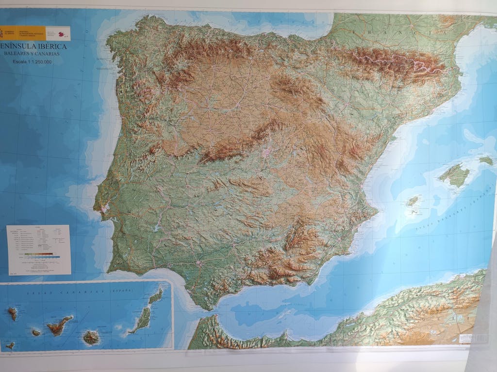 3D Raised relief map - Iberian Peninsula, Balearies & Canaries | CNIG