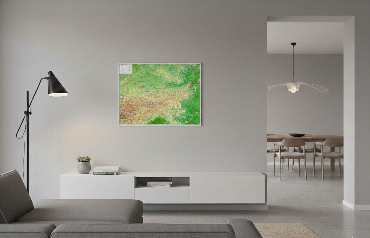 Our manufacturing workshop can also offer various custom finishes for the mounting of your wall maps (e.g., metal or synthetic slats or wooden sticks for support, or even metal profiles). Don't hesitate to contact us for your special requests!