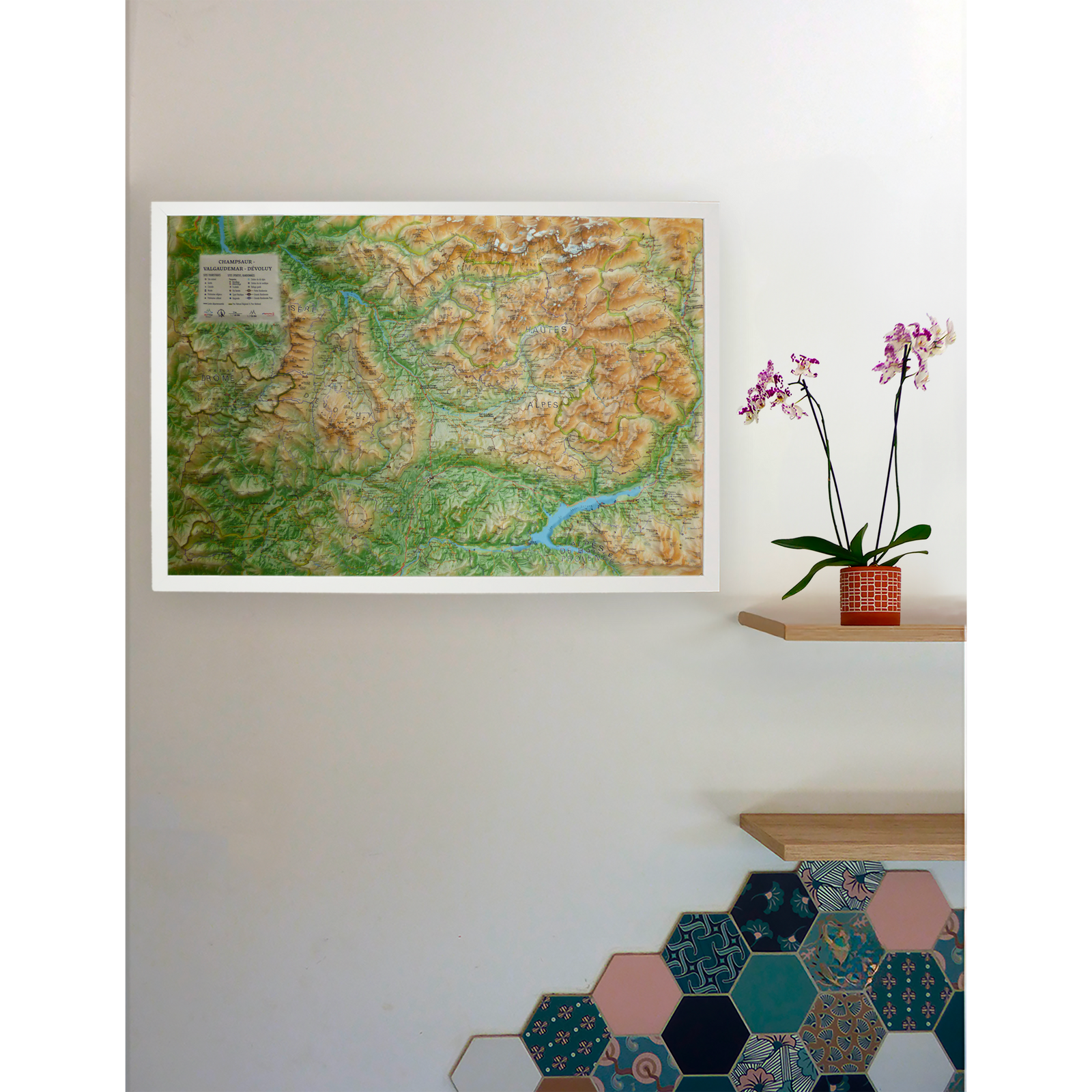 3D Raised relief map - Pyrenees Mountains - (61 cm x 41 cm) | 3D Map (French)