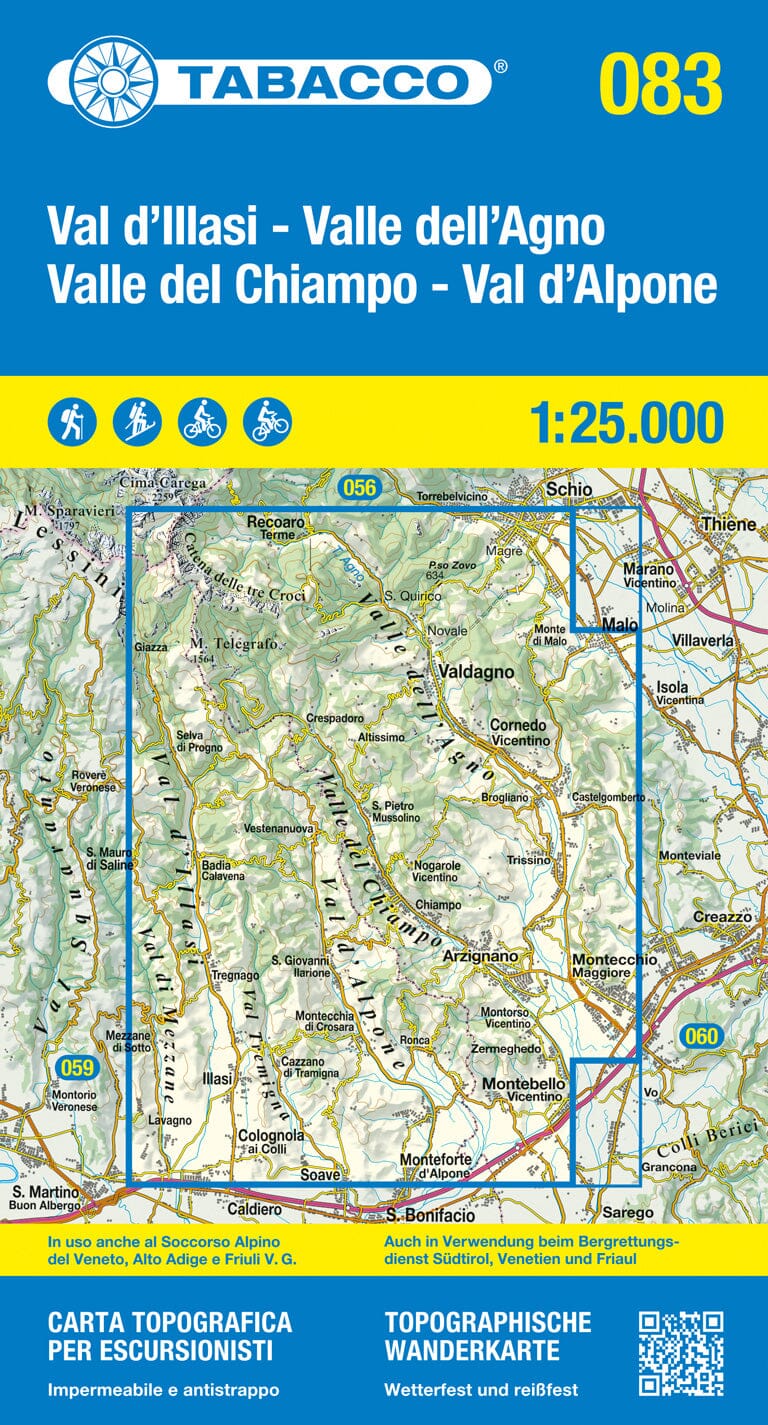 Hiking map No. 83 - Val d'Illasi, Valle dell'Agno, Valle del Chiampo, Val d'Alpone (Italy) | Tabacco