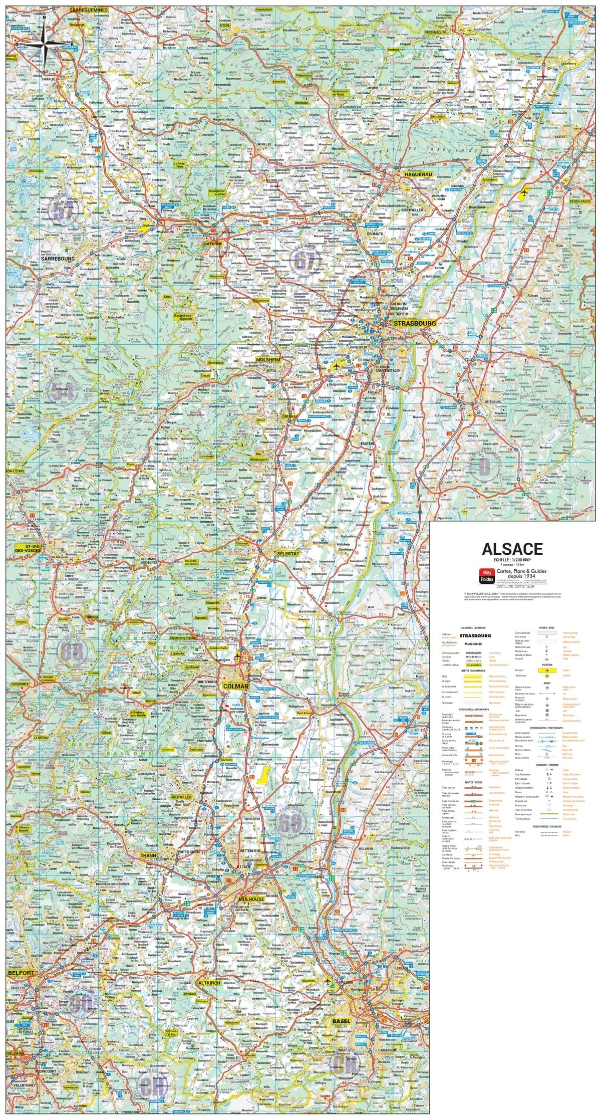 This regional road map at a scale of 1:200,000 (1 cm = 2 km) is printed on 150g paper and then laminated (matte lamination). It is designed to be displayed on the wall: ideal for decorating an office, living room or bedroom. It will appeal to anyone who loves Coffee table posters that are both aesthetically pleasing and rich in content.