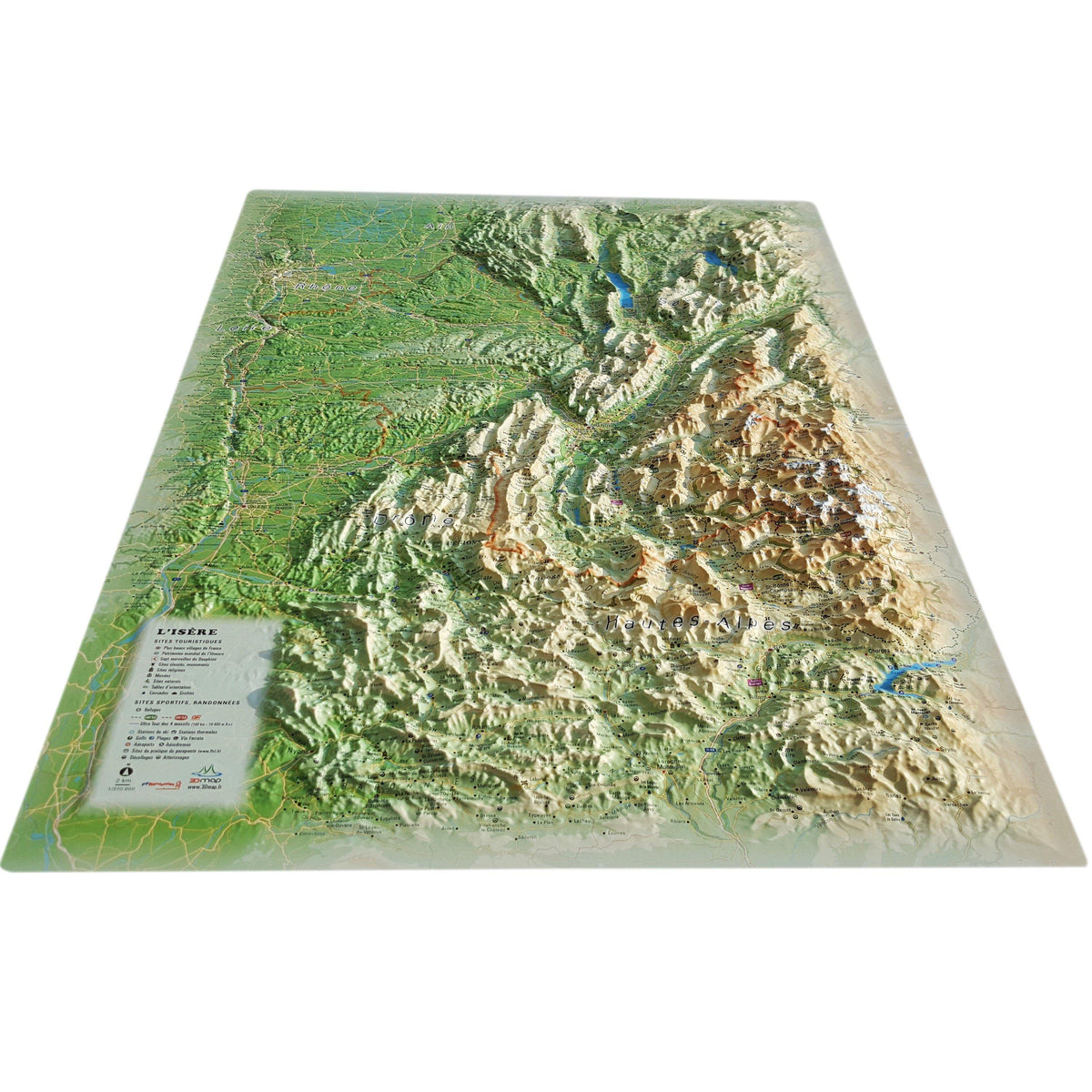 3D Raised relief map - Isère (41 cm x 61 cm) | 3D Map (French)