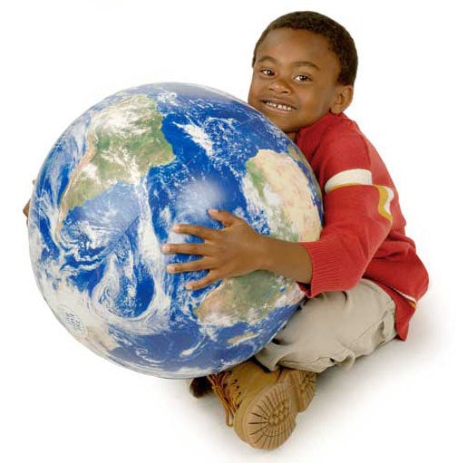Inflatable globe of the world seen from space, 40 cm in diameter.