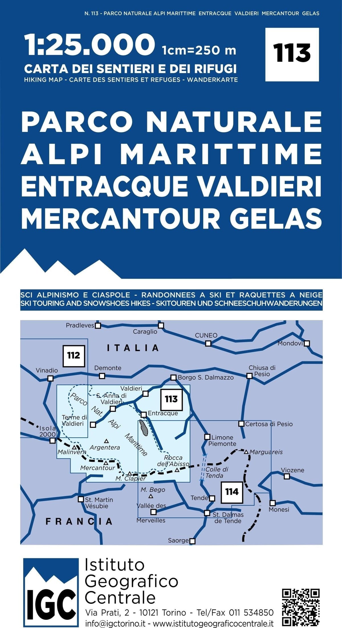 Hiking map No. 113 - Parco naturale Alpi Marittime - Entracque - Valdieri - Mercantour - Gelas 1:25.000 | Istituto Geografico Centrale
