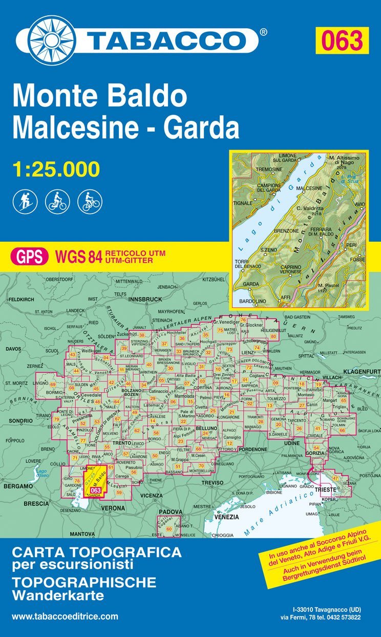 Hiking map No. 63 - Monte Baldo, Malcesine, Garda | Tabacco