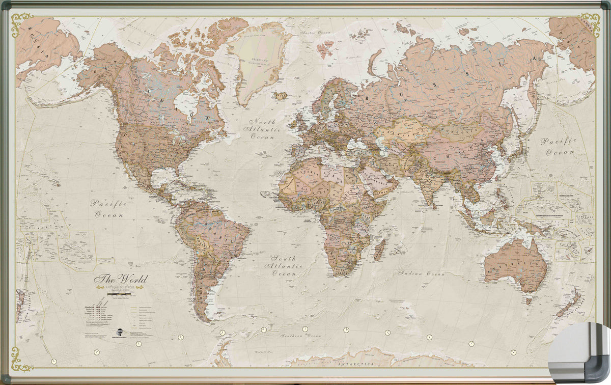 Magnetic board - world, antique style - 136 x 84 cm | Maps International