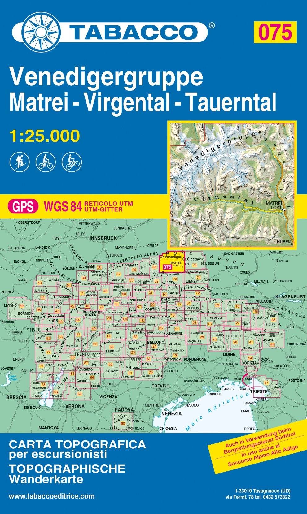 Hiking map No. 75 - Venédigergruppe, Matrei, Virgal, Taunever | Tabacco