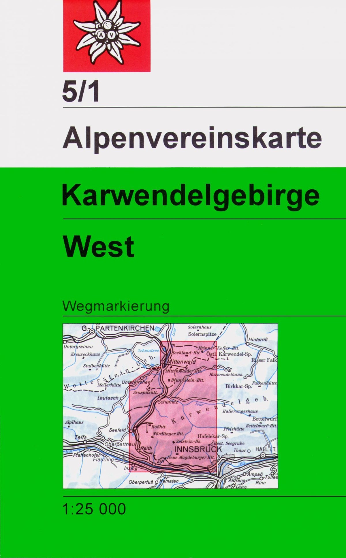 Hiking map of the western part of the Massif des Karwendel span> Edit Alpenverein, publisher specializing in the topographic maps of the Austrian Alps. The superior quality of mapping and the ideal scale (1 / 25,000 or 1/50 000) published maps make it very convenient for mountaineers. The hiking trails and the mountain roads are indicated as well as the cottages and refuges.
