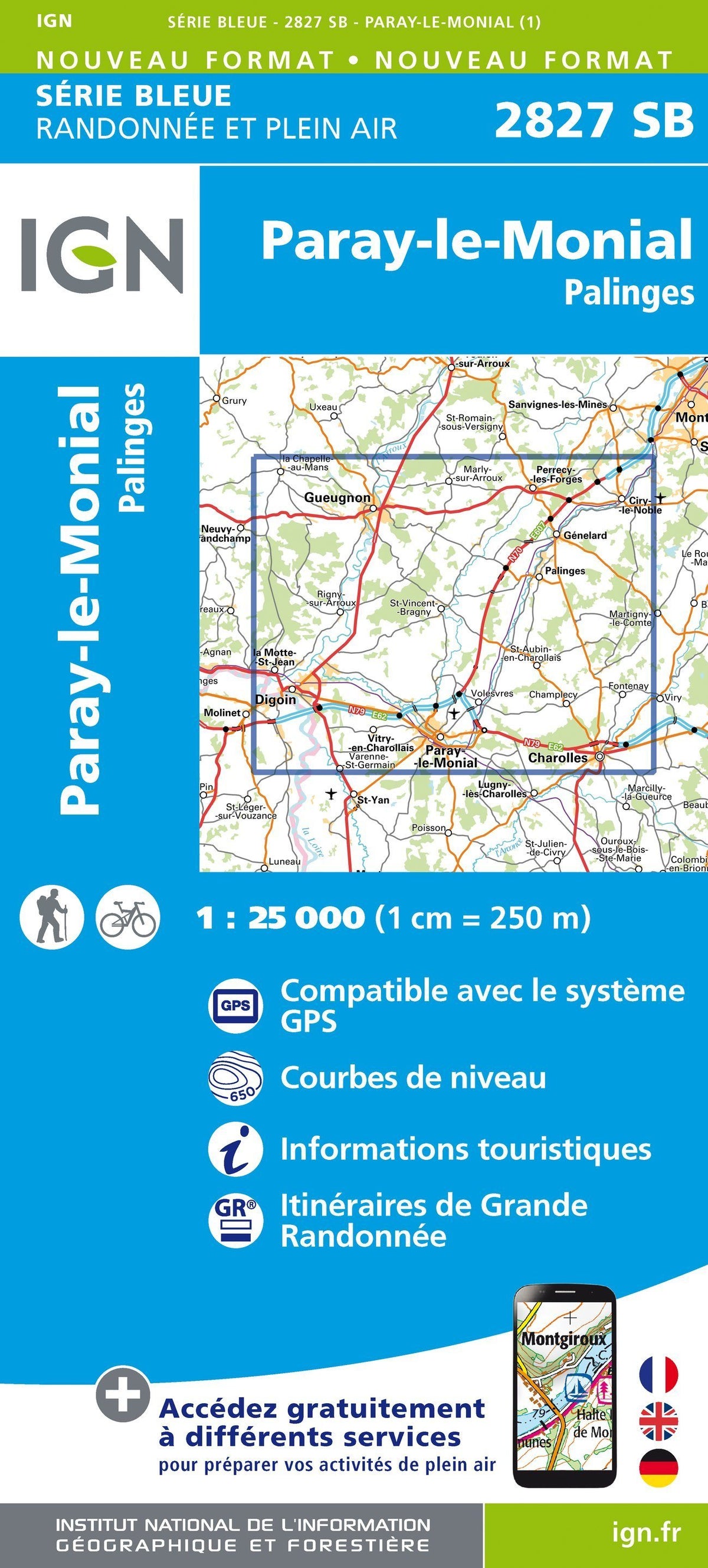 Hiking map No. 2827 - Paray - le - Monial, Palinges | IGN - Blue Series