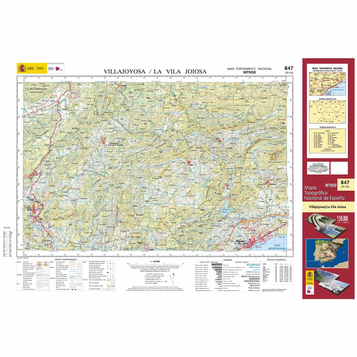 Topographic map of Spain No. 0847 - Villajoyosa / La Vila Joiosa | CNIG - 1/50 000