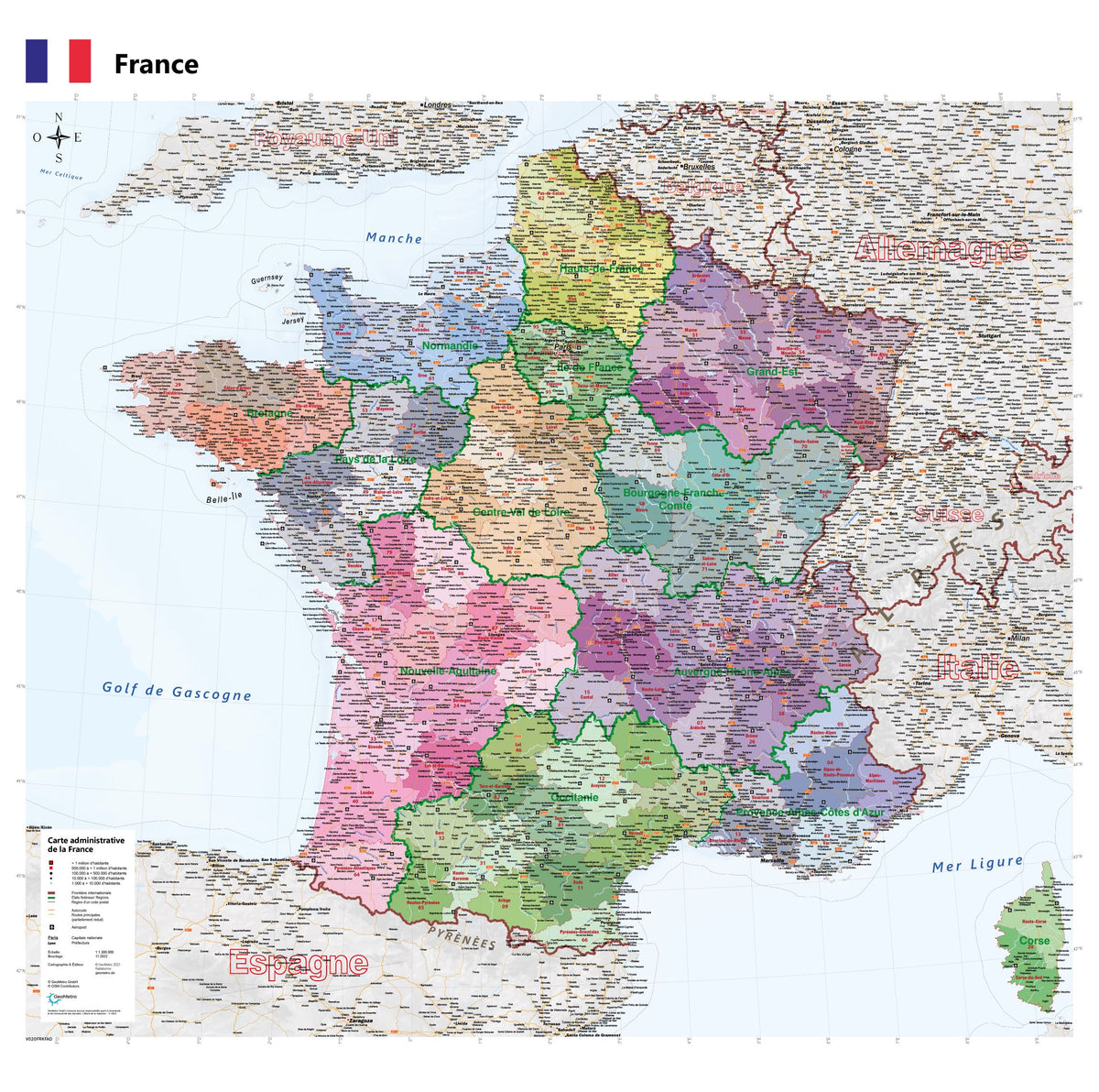 Laminated wall map - Administrative France (100 x 100 cm) | GeoMetro