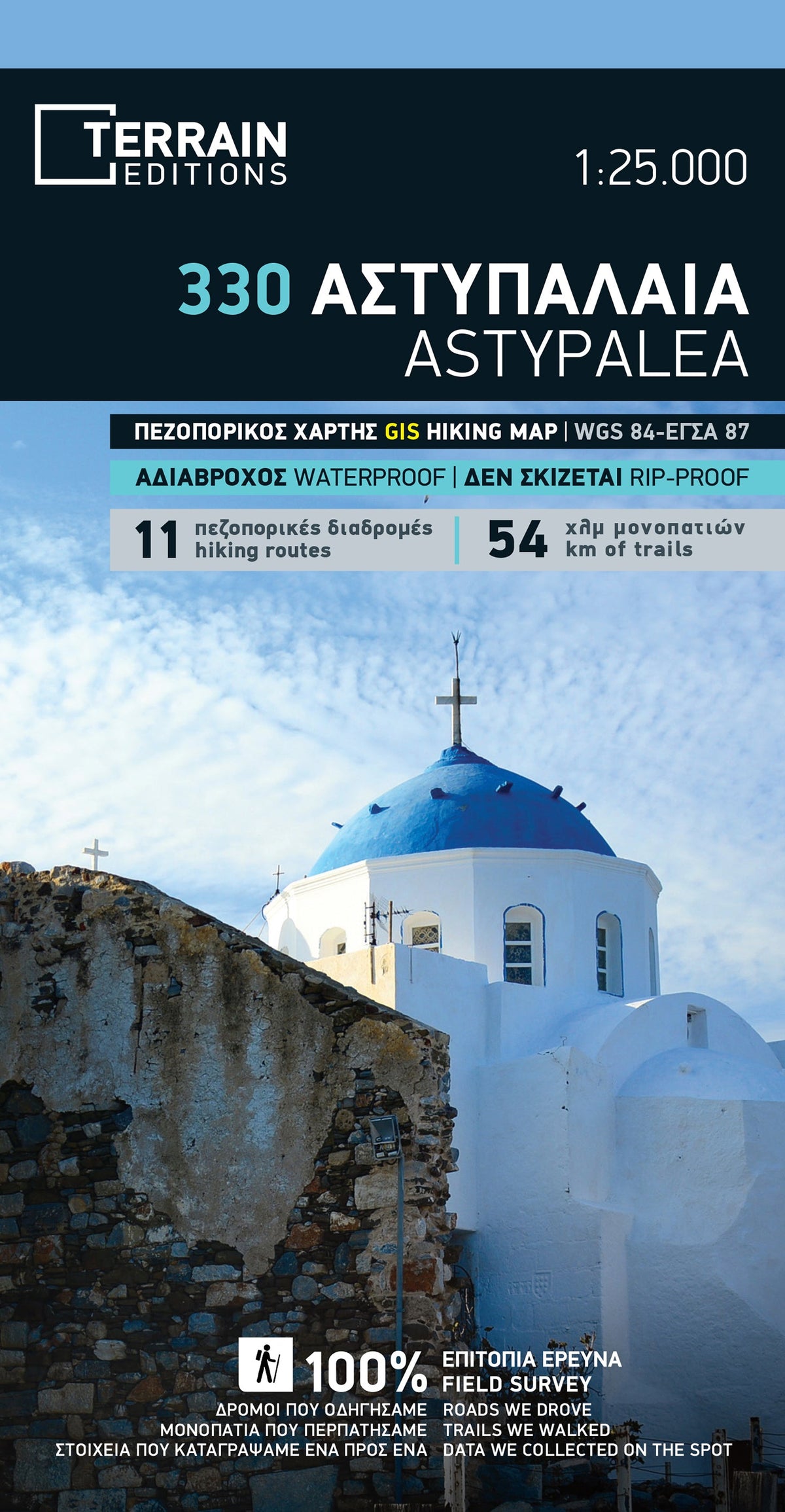 Waterproof topographic map of Astemaea Island (Greece) published by Cartography. Level curves, indication of hiking trails. All the names are in Greek and Latin. Tourist information (beaches, points of interest, maritime links ...) and selection of hikes with duration and distance (on the back). Multilingual map (French, English, German and Greek). Detailed map protected by a laminated case. Scale 1 / 25,000.