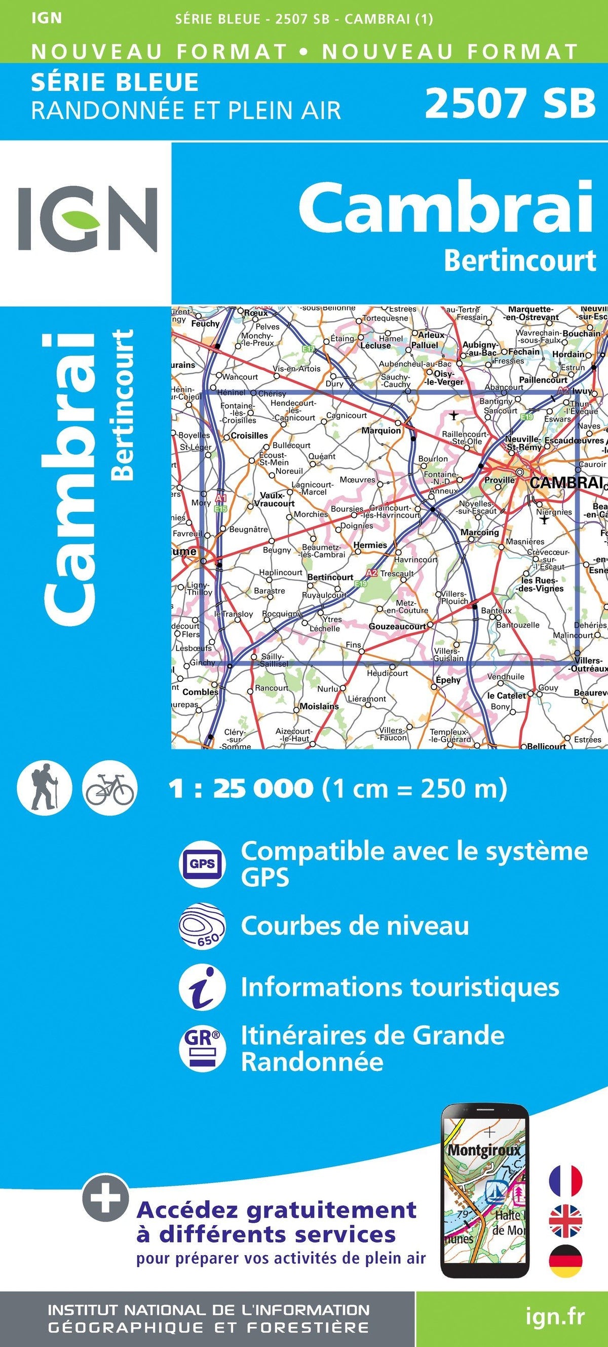 Hiking map No. 2507 - Cambrai, Bertinour | IGN - Blue Series