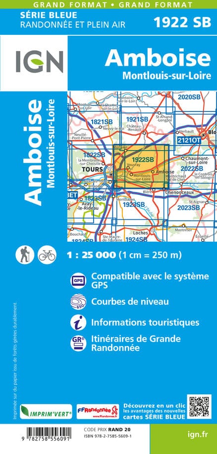Hiking map No. 1922 - Amboise, Montlouis - sur - Loire | IGN - Blue Series