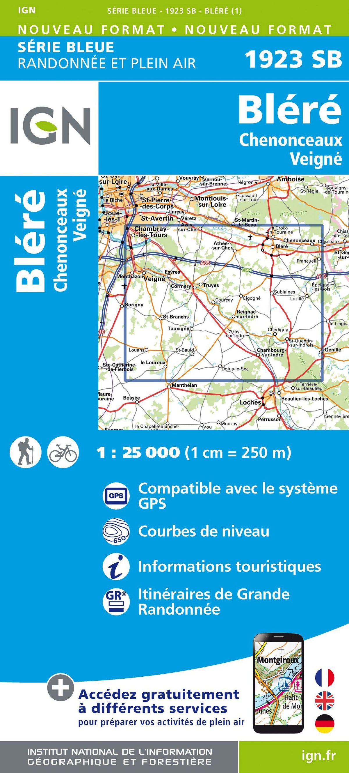 Carte de randonnée n° 1923 - Bléré, Chenonceaux, Veigné | IGN - Série Bleue carte de randonnée IGN Default Title