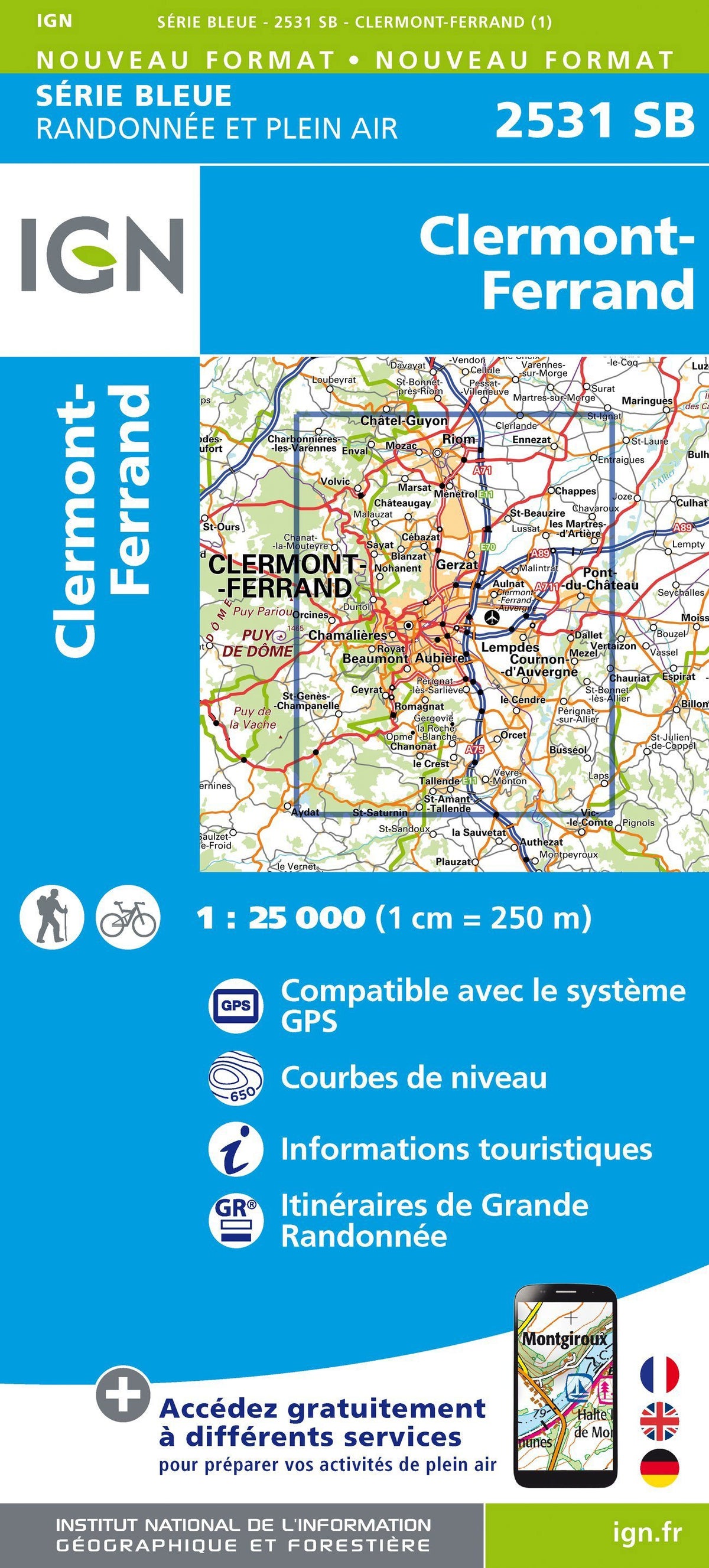 Carte de randonnée n° 2531 - Clermont-Ferrand | IGN - Série Bleue carte de randonnée IGN Default Title