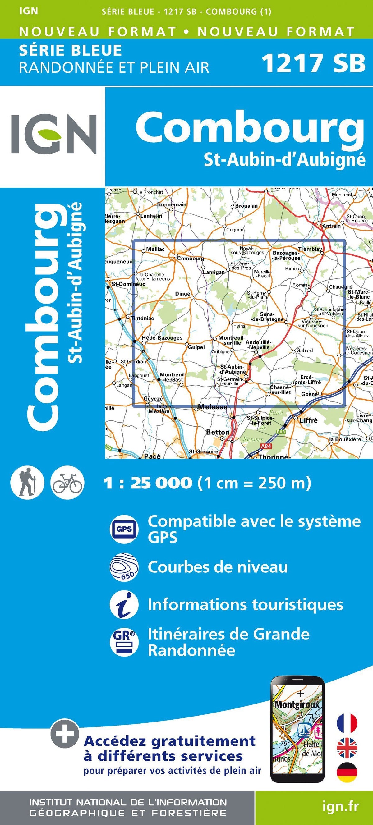 Hiking map No. 1217 - Combourg, St - Aubin - Aubigné | IGN - Blue Series