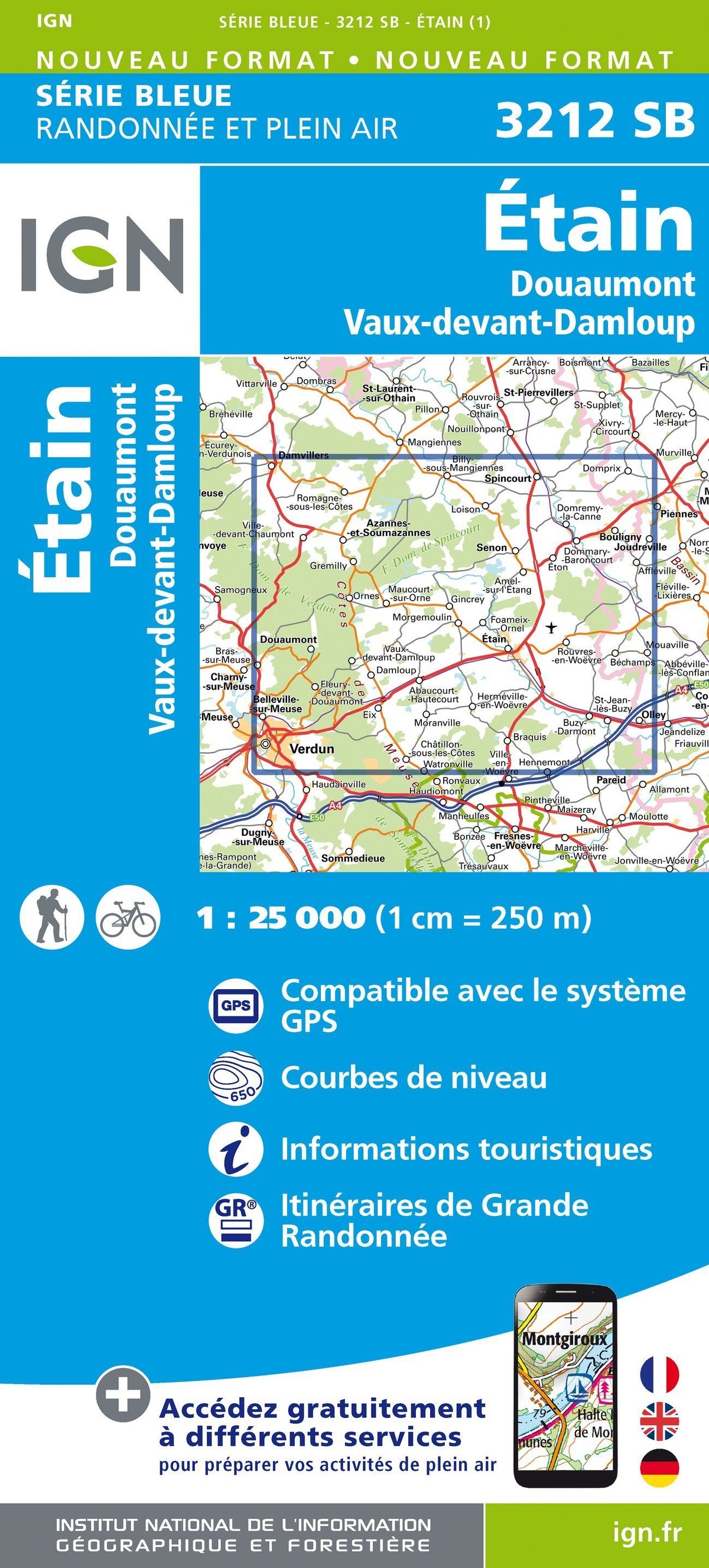 Hiking map No. 3212 - Tin, Douaumont, Vaux - Avail - Damloup | IGN - Blue Series