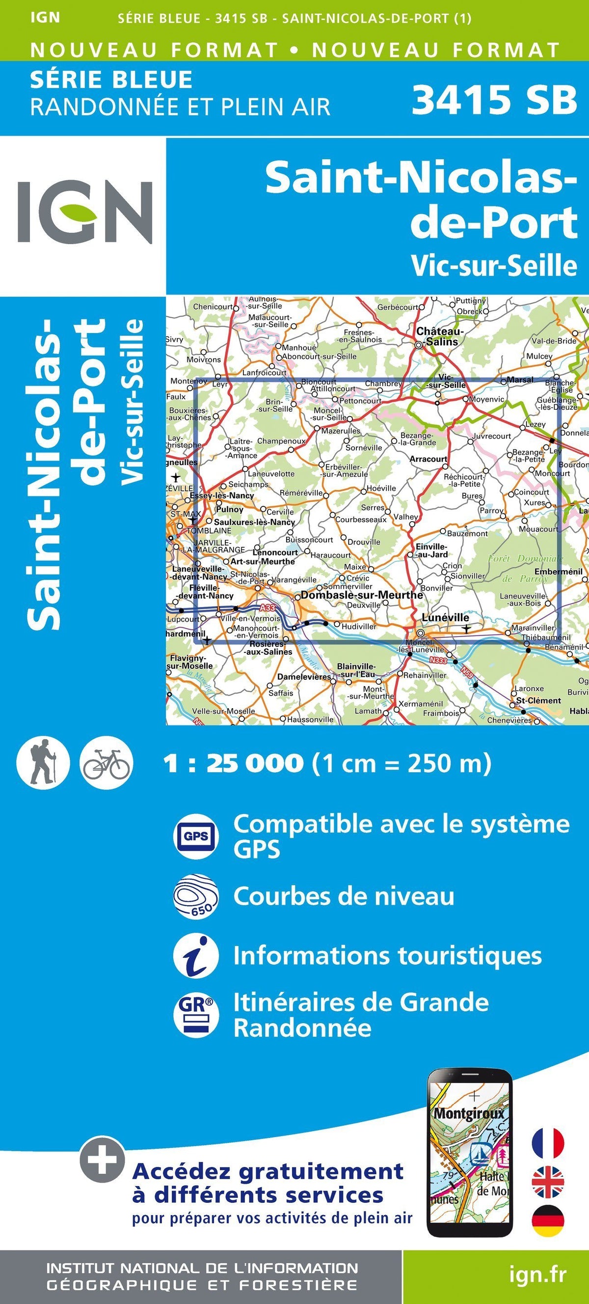 Hiking map No. 3415 - Saint - Nicolas - de - Port, Vic - sur - Seiile | IGN - Blue Series
